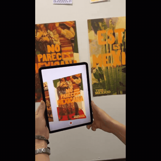 The final work consists of a series of digitally and physically produced posters that depict commonly held stereotypes. Each piece incorporates Augmented Reality (AR) to deepen viewer engagement: when scanned with a mobile device, the initial image — representing the stereotype — animates to reveal the reality behind it. These animations portray the true richness, diversity, and culture of Mexico.